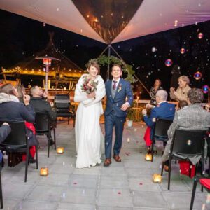 De voorbereidingen verliepen ook heel vlot door de hulp en juiste vragen van Karolien. Tijdens de ceremonie leek het alsof ze ons al jaren kende, de manier waarop ze ons verhaal bracht was er boenk op! Achteraf hebben we enorm veel complimenten gekregen van onze gasten hoe mooi en aangenaam de ceremonie was.