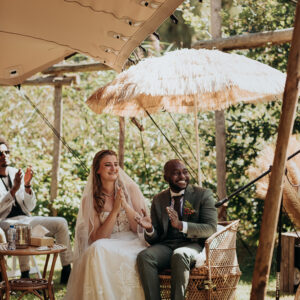 Door haar zorgvuldige aanpak konden we op onze grote dag ook echt genieten van de ceremonie. We voelden ons, zowel tijdens de voorbereidingen als op onze trouwdag, erg op ons gemak bij Nieke. We hebben tijdens ons kennismakingsgesprek uitvoerig gesproken over alles wat we belangrijk vinden. Ze stelde zich open op en stelde de juiste vragen om ons beter te leren kennen. Het was erg leuk dat ze ook een paar vragen had bewaard om later los van elkaar te beantwoorden, zodat er op de grote dag zelf een element van verrassing was voor ons beiden. Toevallig hadden we ook nog wat persoonlijke raakvlakken met Nieke, en dat liet ze ook terugkomen in haar verhaal. Er was niks wat we anders hadden gewild, het was precies goed zoals zij het heeft gedaan. Een traantje, veel gelach en heel veel herkenbaarheid. Van onze familie en vrienden hebben we achteraf dan ook veel complimenten gekregen over onze BABS.