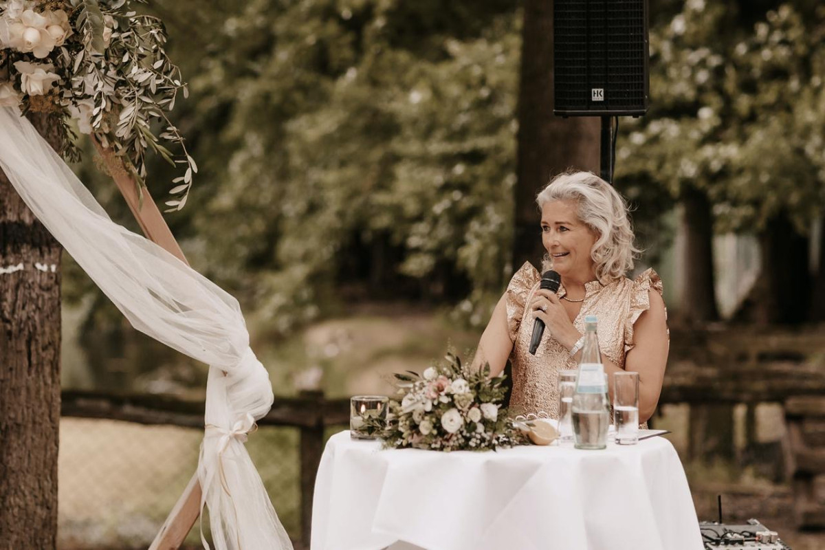 Tijdens de ceremonie wist Petra met haar eigen stijl, humor en warmte precies de juiste toon te raken. Haar toespraak was persoonlijk, ontroerend en tegelijkertijd luchtig en vrolijk — precies zoals wij het wilden. Niet alleen wij, maar ook onze gasten hebben enorm van de toespraak genoten!